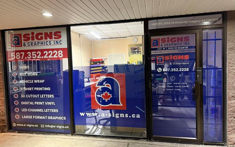 Contact A-Signs & Graphics Inc for expert sign production, graphic design, and free consultations with a lifelong guarantee. Phone: 587.352.2228 Email: info@a-signs.ca