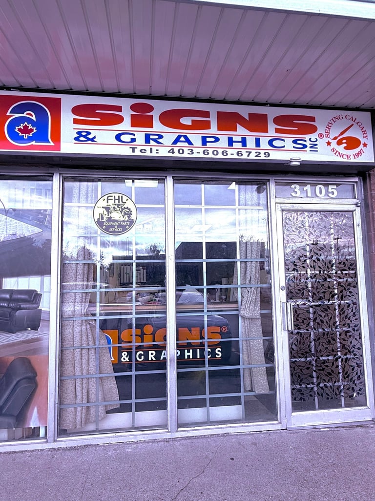 Contact A-Signs & Graphics Inc for expert sign production, graphic design, and free consultations with a lifelong guarantee. Phone: 403.606.6729 Email: asignsandgraphicsinc@gmail.com